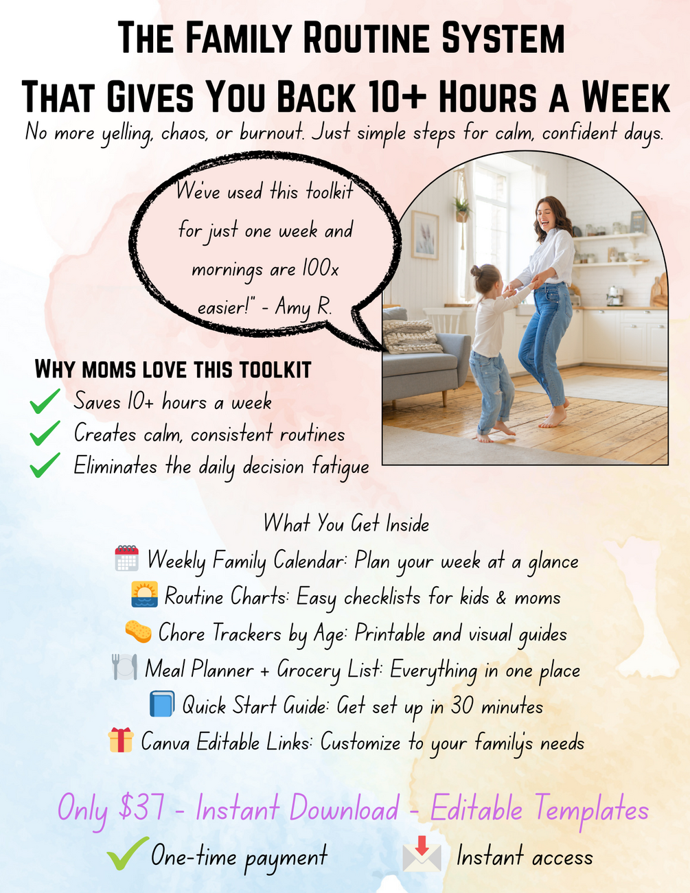 Finally, a plug-and-play toolkit designed for busy moms who want structure, sanity, and smoother days—starting this week.
